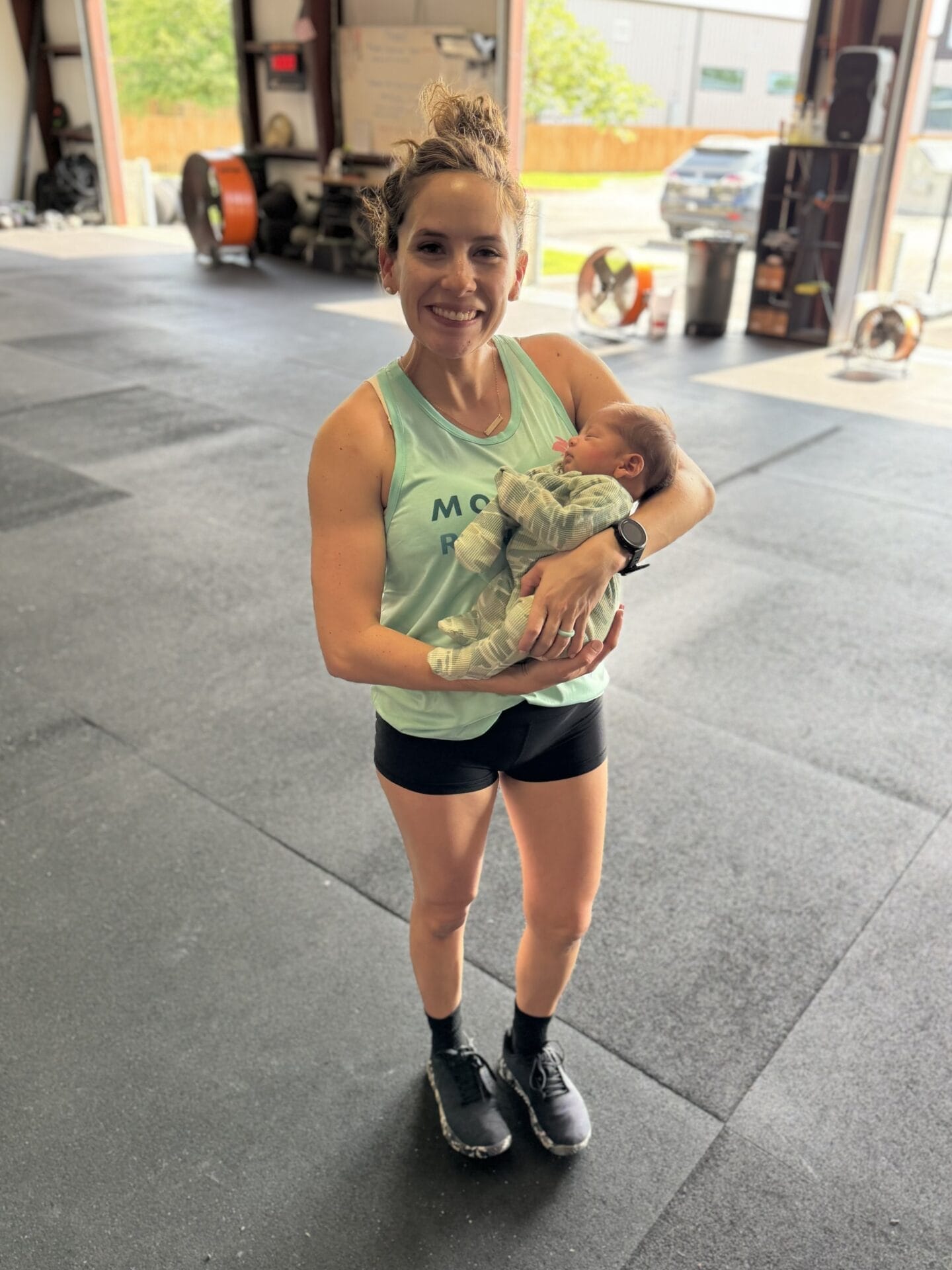Tell us about an obstacle you have had to work through in your training. How did you work through it? I can honestly say, my postpartum journey the first time was a challenge because it involved a lot of unknowns. It was a very humbling experience because I really felt I would bounce back quickly. That was definitely not the case. Having Heidi help me progress from basic foundations to the CF classes was a game changer. Also, being patient.