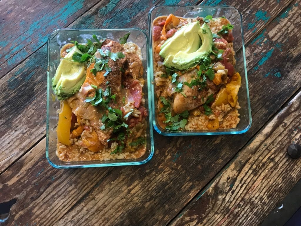 Serve by laying over a bed of rice and spooning as much sauce as you like! I was able to divvy this up into 4 meal prep bowls with a little extra sauce (which I kept because it’s delicious!) I topped this with cilantro, a squeeze of lime, and some avocado. Yum!